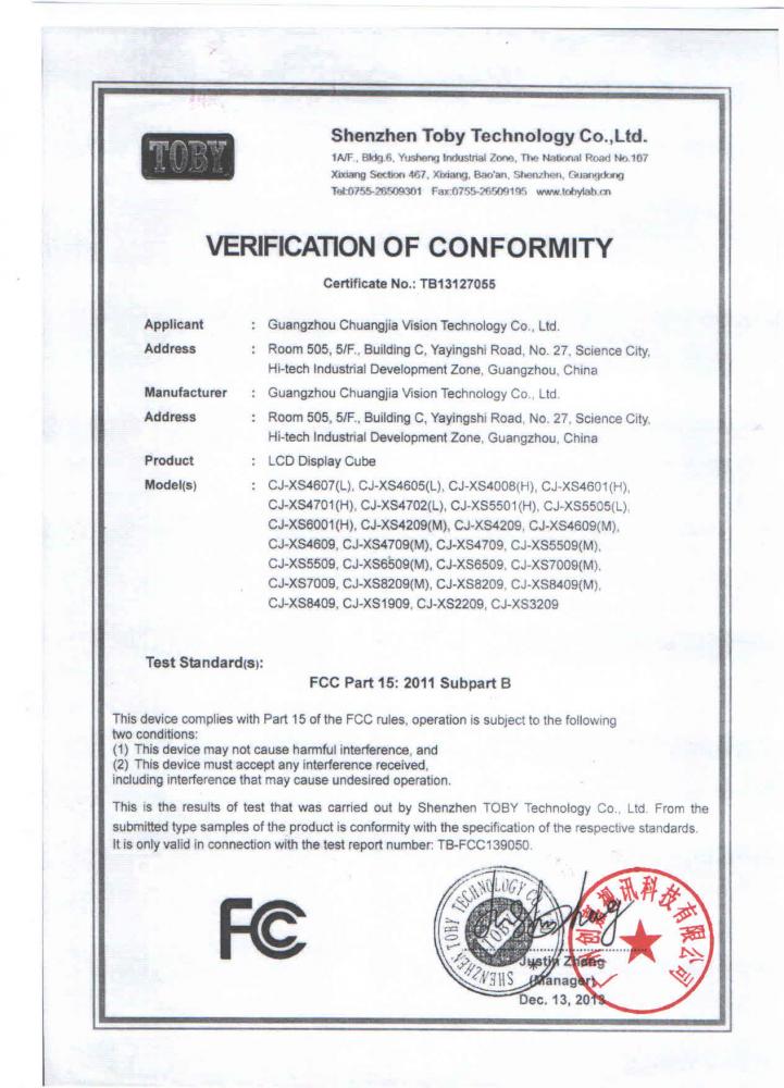 創嘉視訊產品CCC認證英文版