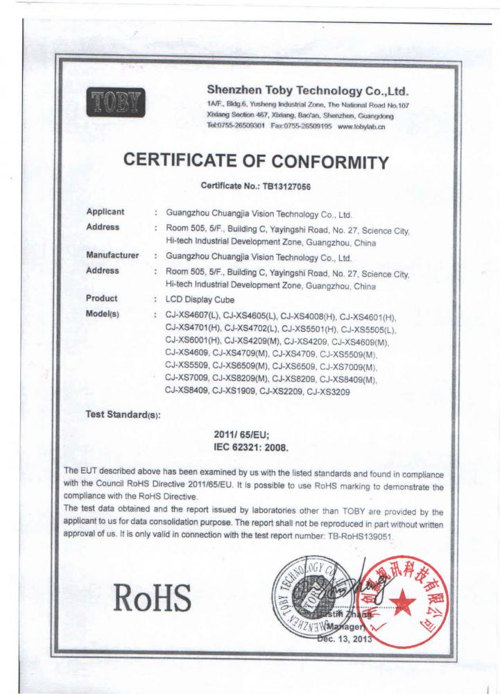 創嘉視訊產品ROHS認證
